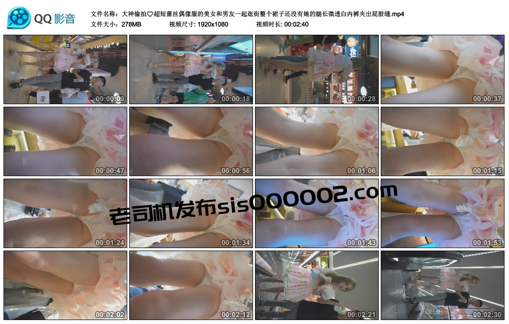 【影片名称】:大神偷拍 超短蕾丝偶像服的美女和男友一起逛街整个裙子还没有她的腿长微透白内裤夹出屁股缝