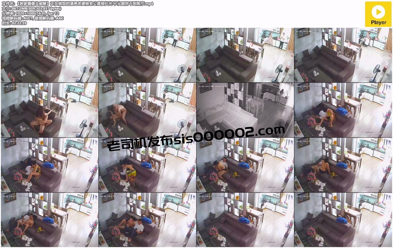 【影片名称】:《居家摄像头破解》正在做饭的漂亮老婆被老公直接扒光 从厨房干到客厅